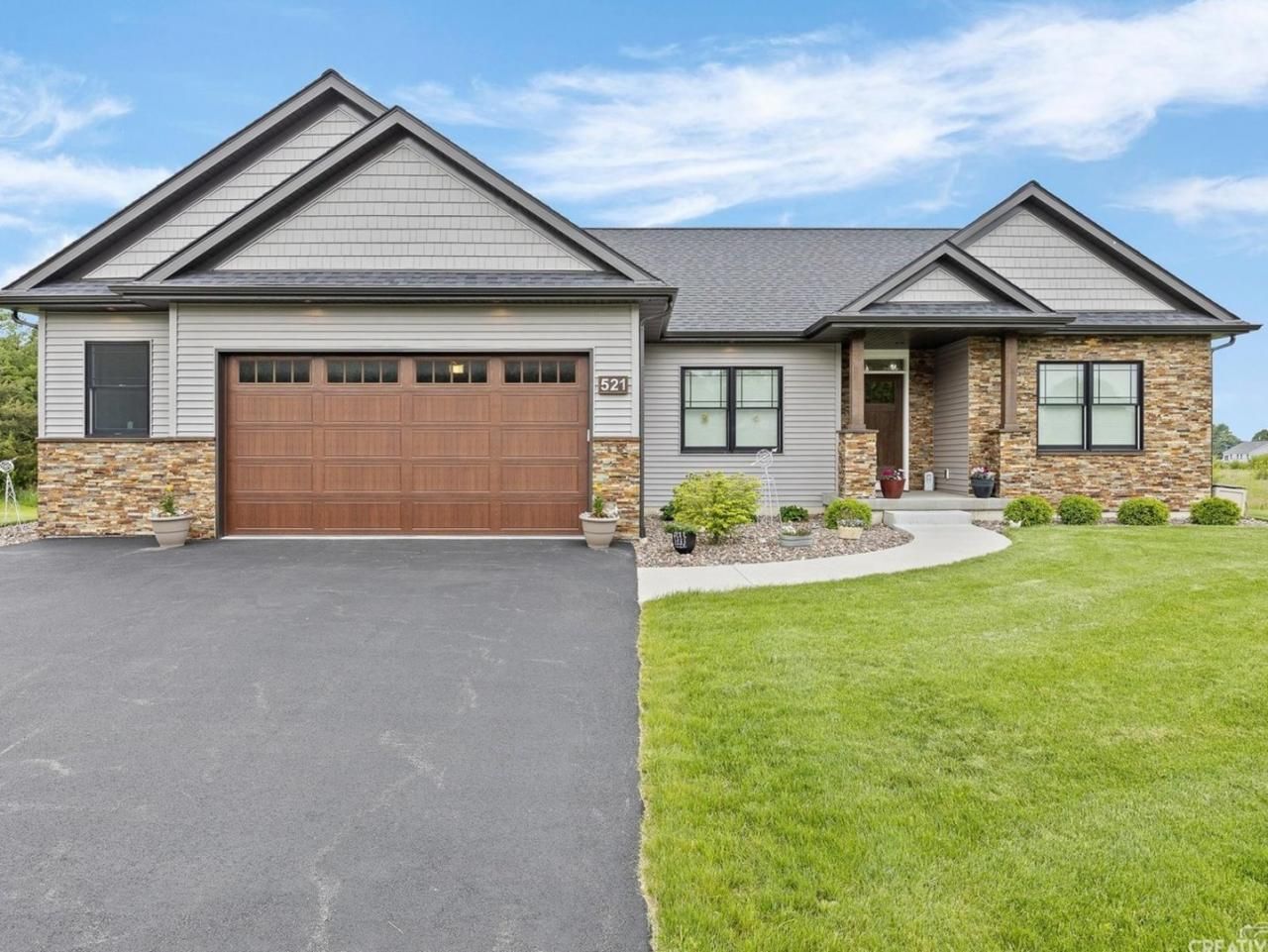 Where to Start! This stunning 2 year new custom built ranch offers just over 1900 sq ft, a open concept floor plan, & a full bsmt! This 3 bedroom 2 bath plus Den offers a split bedroom floor plan perfect for the primary suite hideaway! The Foyer opens to french doors into the den and flanks a stunning living room showcasing vaulted ceilings & a tile/granite accented gas fireplace! Offering additional seating at the island, the kitchen has gorgeous granite countertops, all ss appliances, custom cabinetry, and the perfect dining/breakfast room with sliders to patio /backyard perfect for watching the western sunsets! Primary suite offers a tray ceiling w/ custom lighting, large walk in closet, and stunning private bath w/free standing tub, custom tiled shower, & double vanity! Plus 2 additional bedrooms and full bath! Upgraded white trim, shaker style doors, & upgraded wood laminate throughout 1st floor! 1st floor Laundry w/ closet space! Heated 2.5 car garage! The full unfinished basement w/a full bath rough-in is ready for your ideas!! The bsmt finished would offer a total just under 4000 sq ft of potential living space! Brings your dreams to 521 Walnut today!