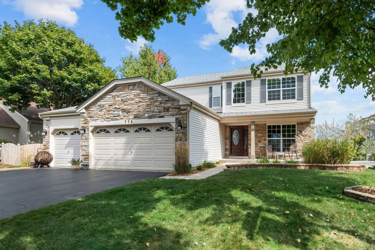 This well maintained home is situated on a breathtaking lot, offering expansive views of open space. With 3 bedrooms, 3.1 baths, a spacious loft, and a finished basement, this home provides nearly 3,000 square feet of finished living space. As you enter the 2-story foyer, you're greeted by hardwood floors and elegant wrought iron stair spindles, creating an impressive first impression. To your right is the living room, and to your left, the formal dining room. The open-concept kitchen flows seamlessly into the family room, where a wall of windows offers uninterrupted views from every angle. The kitchen is equipped with oak cabinetry, Corian countertops, a walk-in pantry, and newer appliances. The family room, with its cozy brick fireplace and wood mantel, is the perfect spot to unwind. Upstairs, you'll find 3 bedrooms and a versatile loft that could easily be converted into a 4th bedroom. The primary suite features his and hers closets and a spacious en suite bathroom. Enjoy the convenience of 2nd floor laundry room as well! The finished lower level is an entertainer's dream with a granite-topped bar, built-in shelving, and ample space for recreation. Step outside to the maintenance-free, stamped concrete patio, where you can enjoy the serene views and mature landscaping. The property also includes an invisible fence for pets and an irrigation system in both the front and back yards. Conveniently located just minutes from I-88, Metra commuter train, trails, parks, and ponds, you can enjoy the beauty of nature while staying close to all your essential needs. Located in the Kaneland School District, this home features a newer roof, furnace, and windows. A truly special place to call home!
